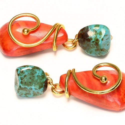 Vintage Yves Saint Laurent Paris Long Faux Turquoise Coral Resin Drop Earrings