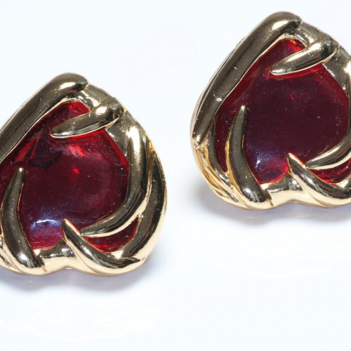 Vintage Yves Saint Laurent Paris Rive Gauche Red Resin Heart Earrings