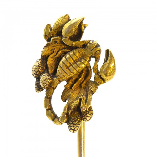 Victorian Gold Scorpion Stick Pin – Foliage and Pine Cone Motif