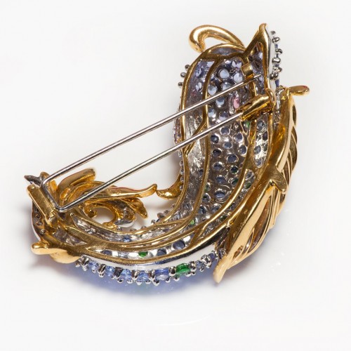 Vintage 18K Gold Sapphire Diamond Tsavorite Stylized Dolphin Brooch