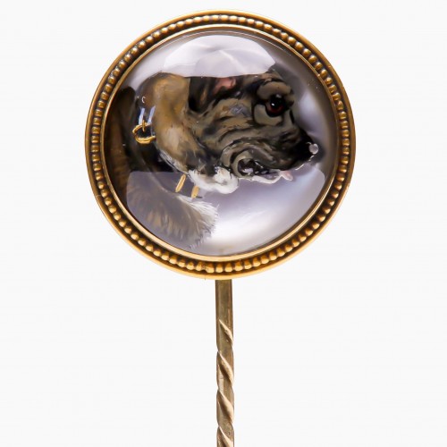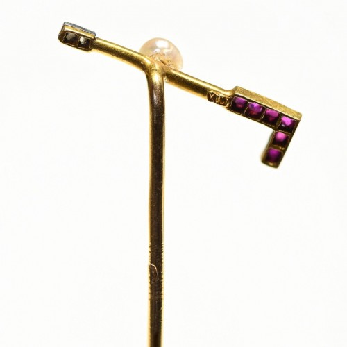 Antique 18K Gold Natural Pearl Ruby Diamond Riding Crop Stick Pin