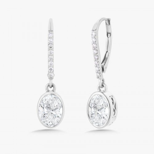 Bezeled Oval Diamond Dangle Earrings 1.79 ctw 14k White Gold