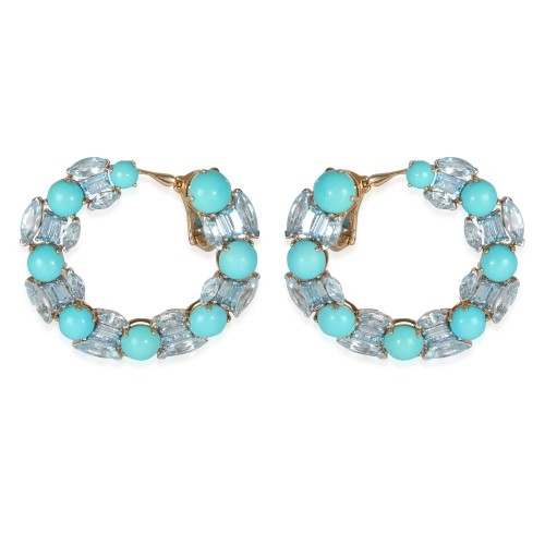 White Gold & Yellow Gold Turquoise and Blue Topaz Hoop Earrings Mixed