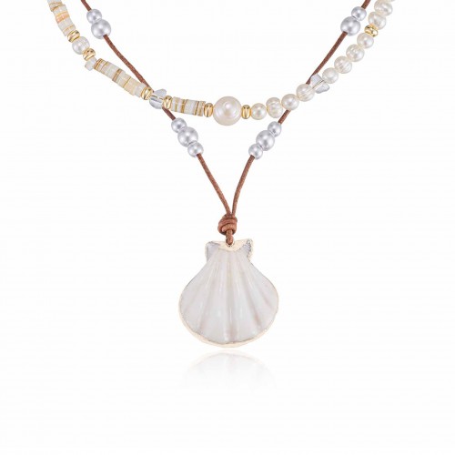 Beach Days Shell Pendant Necklace Set Shell with 18k Gold Plating One Size