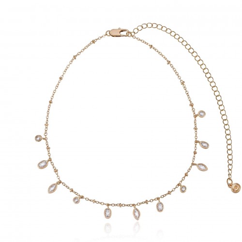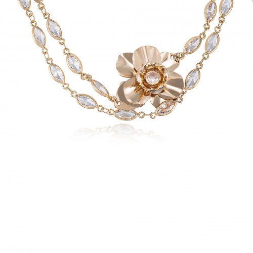 Bezel Crystal Layered Flower Necklace Clear Crystal with 18k Gold Plating One Size