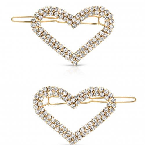 Aphrodite Heart Crystal Barrette Set Clear Crystals One Size