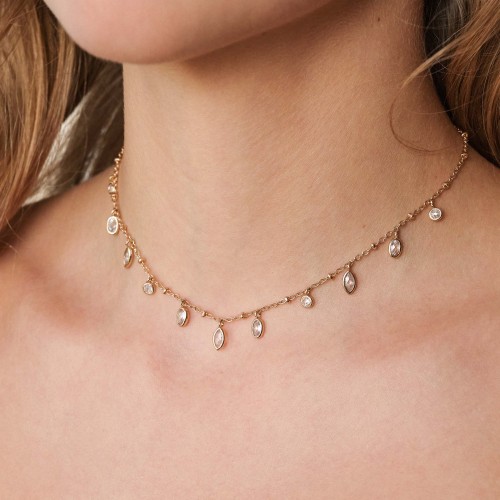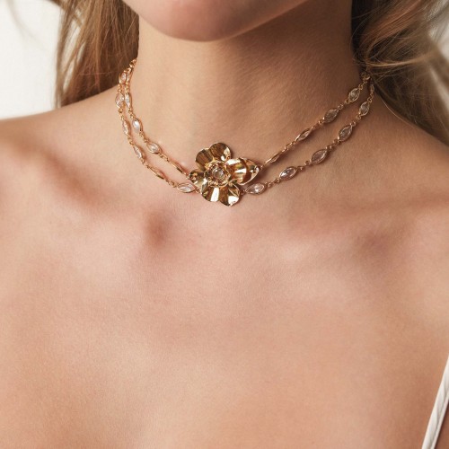 Bezel Crystal Layered Flower Necklace Clear Crystal with 18k Gold Plating One Size