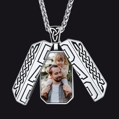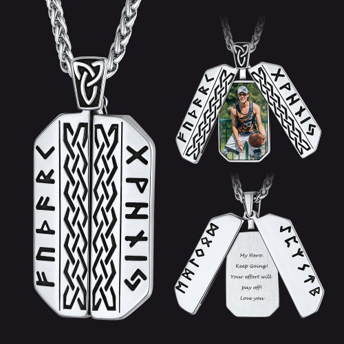 Custom Picture Open Locket Dog Tag Necklace with Viking Rune for Dad