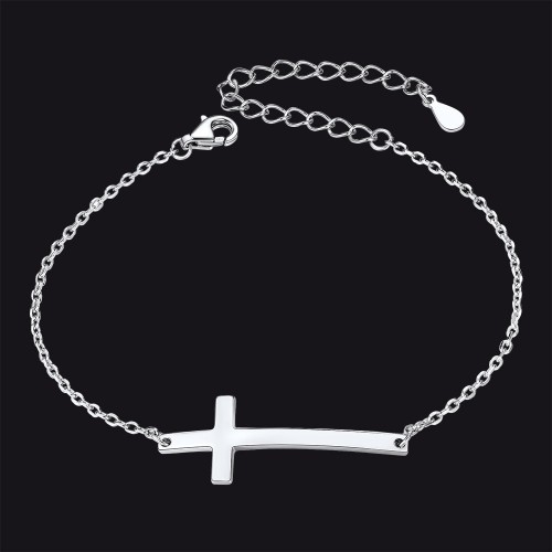 FaithHeart Sterling Silver Sideways Cross Bracelet For Men/Women