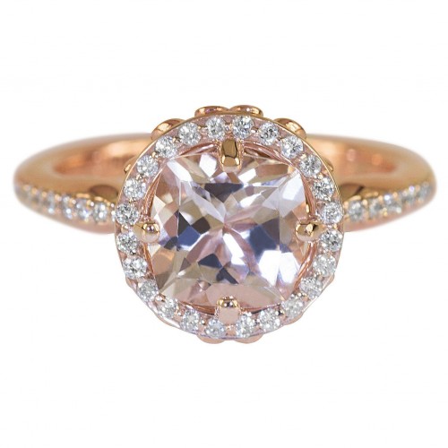 7mm Natural Cushion Morganite Center Diamond Halo Floral Basket Cathedral Design 14k Rose Gold Ring
