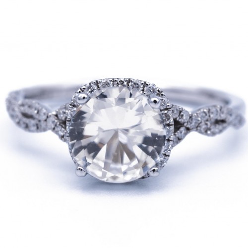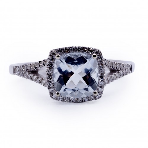 Cushion Natural Aquamarine Setting with Diamond Accented Halo and Split Shank Ring 14K White Gold