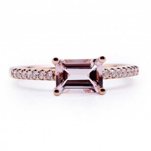 Emerald Cut Morganite East West Setting with Diamond Accented Shank 14K Rose Gold