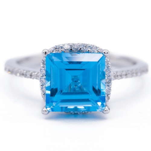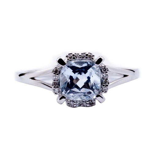 Cushion Aquamarine Setting with Diamond Accented Halo and Plain Split Shank Ring 14K White Gold