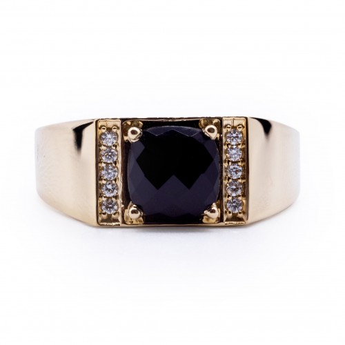 Cushion Natural Black Onyx with Vertical Diamond Accented Sides Ring 14K Yellow Gold