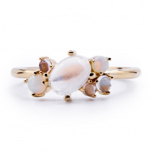Natural Opal, Moonstone, Quartz Multi-Stone Ring 14K Yellow Gold