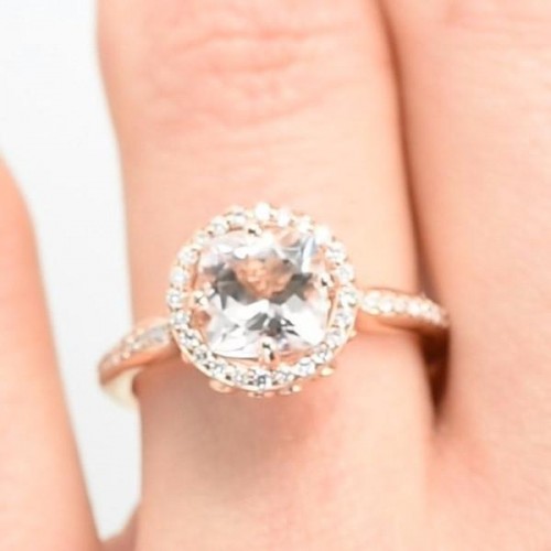 7mm Natural Cushion Morganite Center Diamond Halo Floral Basket Cathedral Design 14k Rose Gold Ring