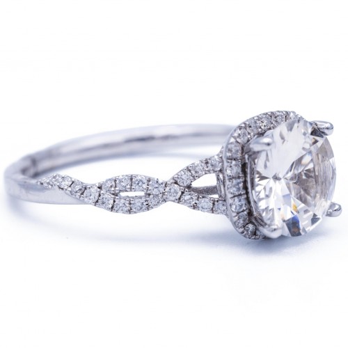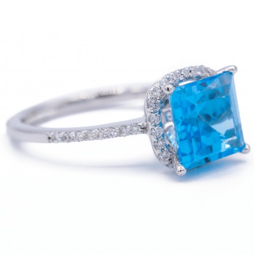 Cushion Aquamarine Setting with Diamond Accented Halo and Plain Split Shank Ring 14K White Gold