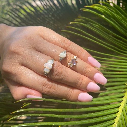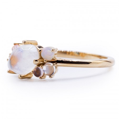 Natural Opal, Moonstone, Quartz Multi-Stone Ring 14K Yellow Gold