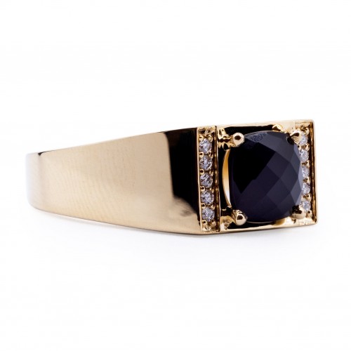 Cushion Natural Black Onyx with Vertical Diamond Accented Sides Ring 14K Yellow Gold