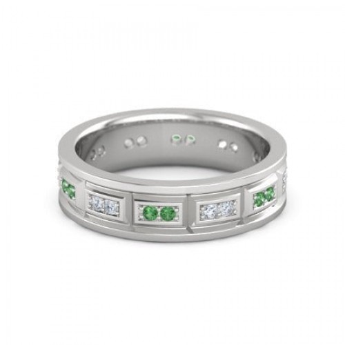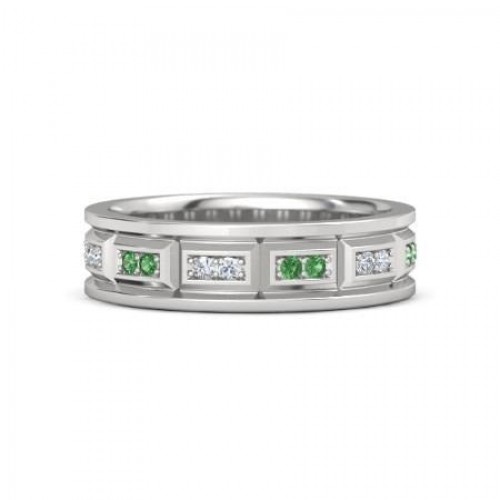 Vintage Type Band Real Natural Earth Mined Diamonds Green Emerald 3.60 Carats White Gold 14K