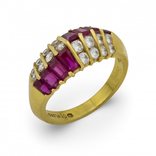 Vintage Gemlok 1.20 carat ruby diamond 18k yellow gold ring