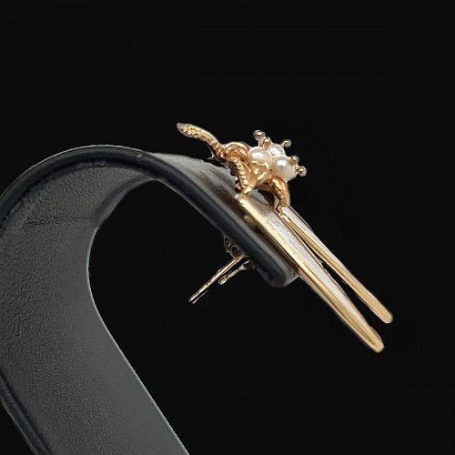 Mother of Pearl & Pearl Estate Earrings Yellow Gold – J39840