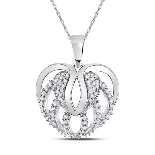 10K White Gold 10Kt White Gold Womens Round Diamond Open Strand Heart Pendant 1/5 Cttw 1.61 Gram 10K