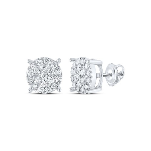 10K White Gold 10Kt White Gold Womens Round Diamond Fashion Cluster Earrings 1.00 Cttw 2.4 Gram 10K