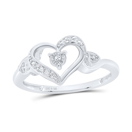 Sterling Silver Sterling Silver Womens Round Diamond Heart Frame Cluster Ring 1/8 Cttw 2.85 Gram S