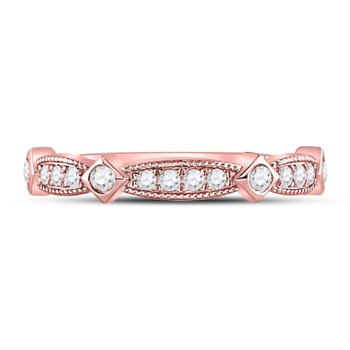 10K Rose Gold 10Kt Rose Gold Womens Round Diamond Key Stackable Band Ring 1/8 Cttw 1.18 Gram 10K