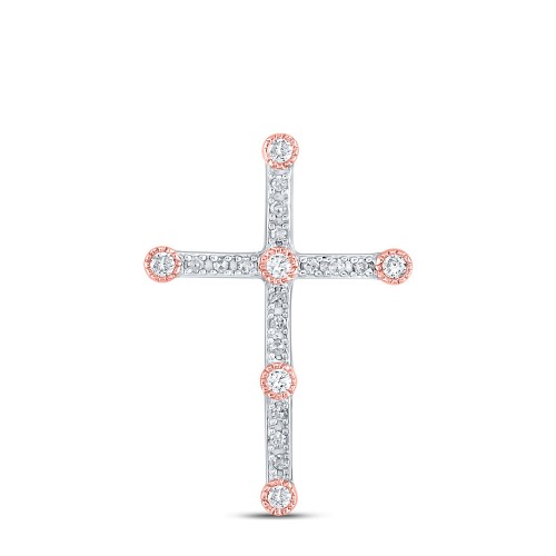 10K Rose Gold 10Kt Two-Tone Gold Womens Round Diamond Cross Faith Pendant 1/4 Cttw 2.24 Gram 10K