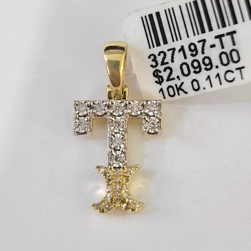 10k Gold Diamond T Charm Pendant Natural Letter Initial Alphabet