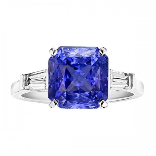 14K Gold 3 Stone Ring Radiant Sapphire & Baguette Natural Earth Mined Diamonds 3.50 Carats
