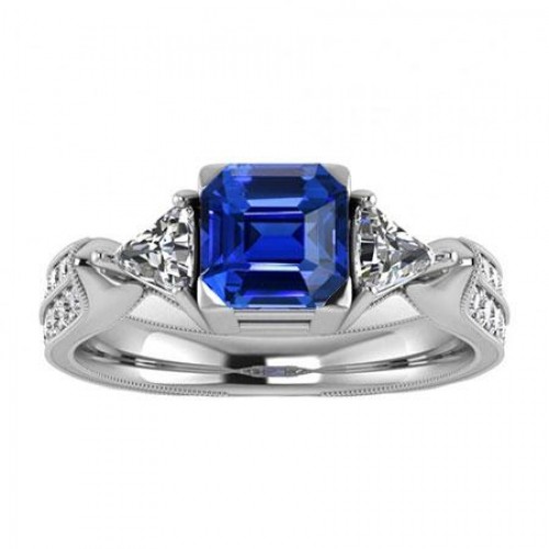 Trillion & Round Natural Earth Mined Diamond Asscher Sapphire Engagement Ring 2.50 Carats