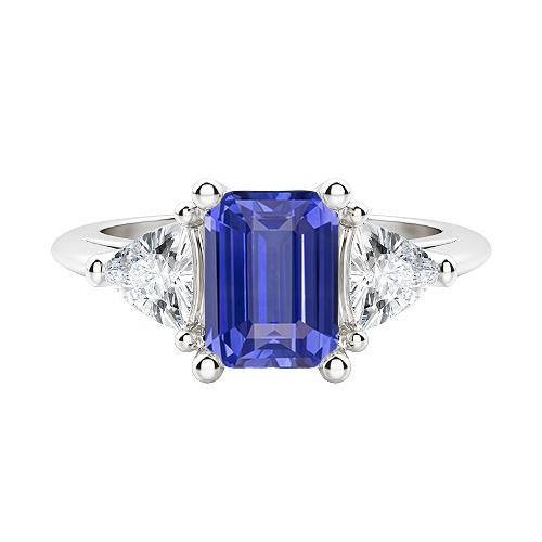 White Gold 3 Stone Ring Emerald Sapphire 2.50 Carats Trillion Natural Earth Mined Diamond