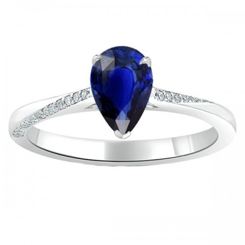 White Gold Blue Sapphire Ring Pear & Round Natural Earth Mined Diamonds 2.50 Carats
