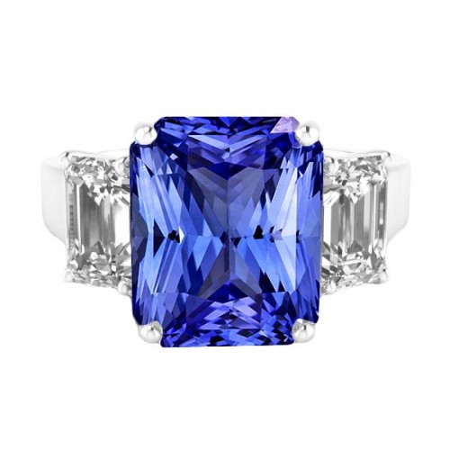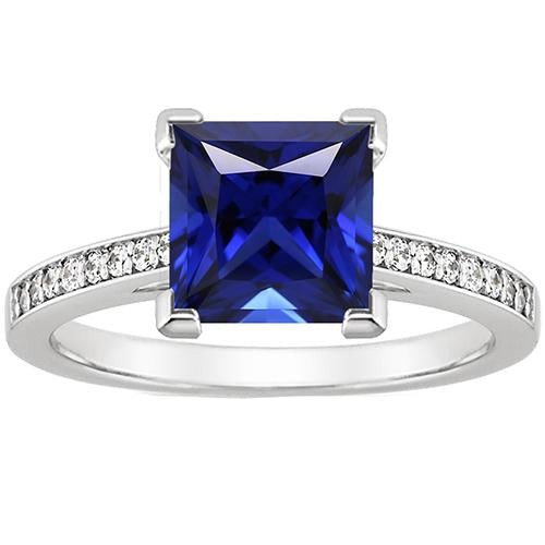 White Gold Engagement Ring Princess Blue Sapphire & Natural Earth Mined Diamond 4 Carats
