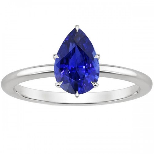 White Gold Gemstone Ring Solitaire Pear Sri Lankan Sapphire 4 Carats