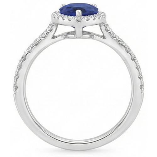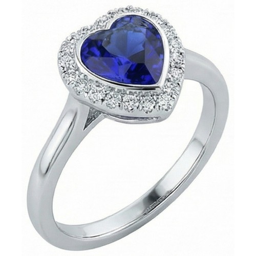 White Gold Halo Ring Heart Blue Sapphire & Natural Earth Mined Diamonds 3 Carats Jewelry