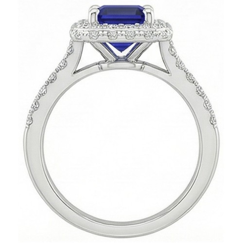White Gold Halo Ring 6.50 Carats Princess Blue Sapphire With Accents