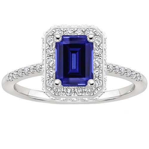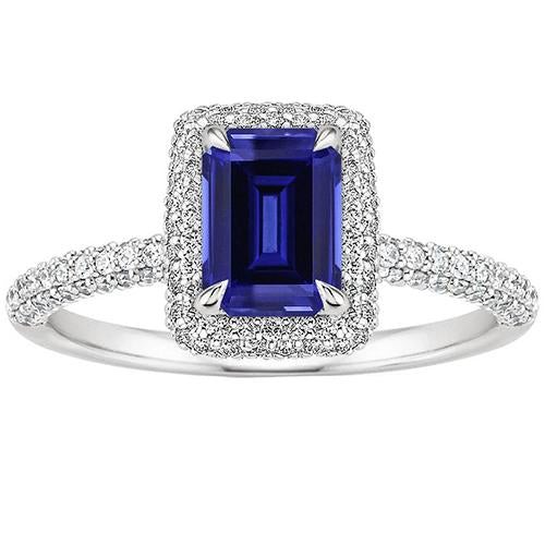 White Gold Halo Ring Emerald Sri Lankan Sapphire & Natural Earth Mined Diamond 4.50 Carats