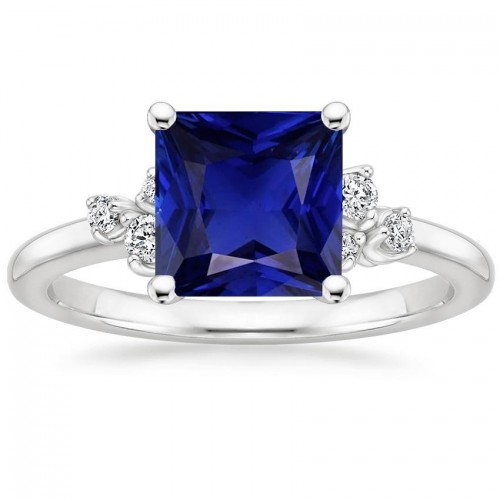 White Gold Natural Earth Mined Diamond & Gemstone Ring 6 Carats Princess Cut Blue Sapphire