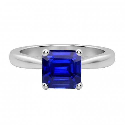 2 Carats Emerald Solitaire Gemstone Ring Ceylon Sapphire White Gold