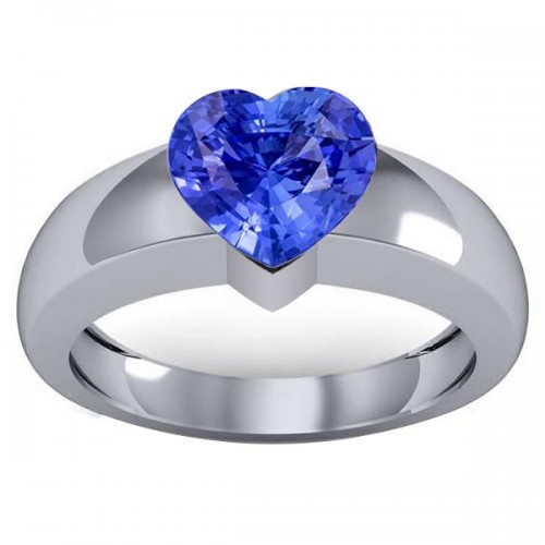 2 Carats Ceylon Sapphire Solitaire Ring Heart Shaped Thick Shank