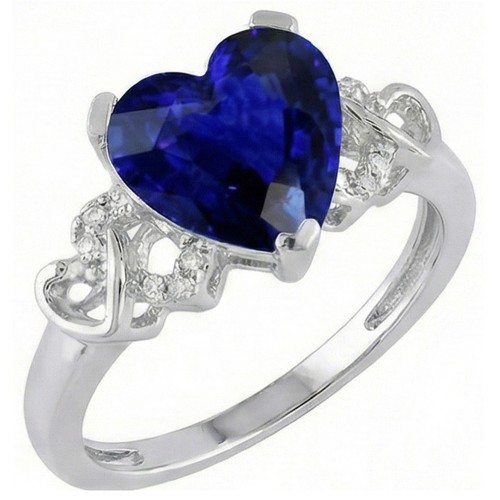 White Gold Natural Earth Mined Diamond Jewelry Heart Sapphire Ring & Accents 3.50 Carats