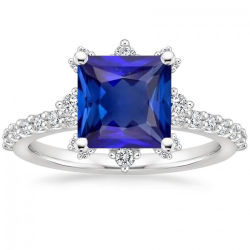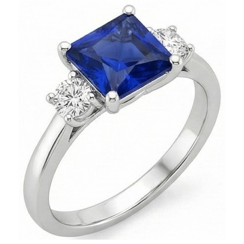 White Gold Natural Earth Mined Diamond Ring Princess Ceylon Sapphire 3 Stone 5.50 Carats