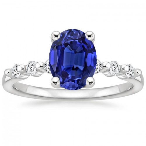 White Gold Natural Earth Mined Diamond Ring Deep Blue Sapphire With Accents 2.50 Carats