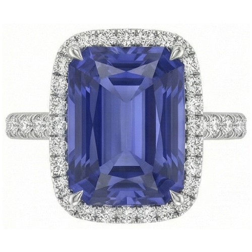 White Gold Natural Earth Mined Diamond Ring Women’s Halo Radiant Cut Sapphire 4 Carats