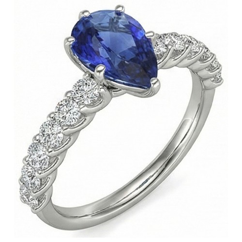 White Gold Pear Blue Sapphire With Accents Ring 3.50 Women’s Jewelry