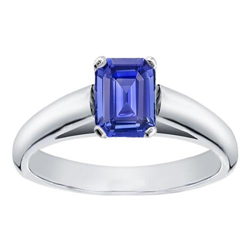 White Gold Solitaire Emerald Cut Ceylon Sapphire Ring 1.50 Carats